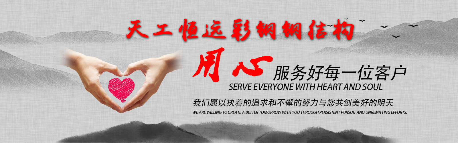 公司成立十多年來(lái)我們始終堅(jiān)持"誠(chéng)信務(wù)實(shí)、勇攀高峰"的企業(yè)精神,時(shí)刻準(zhǔn)備著與您精誠(chéng)合作,共同打造彩鋼、鋼結(jié)構(gòu)行業(yè)的精品而努力!